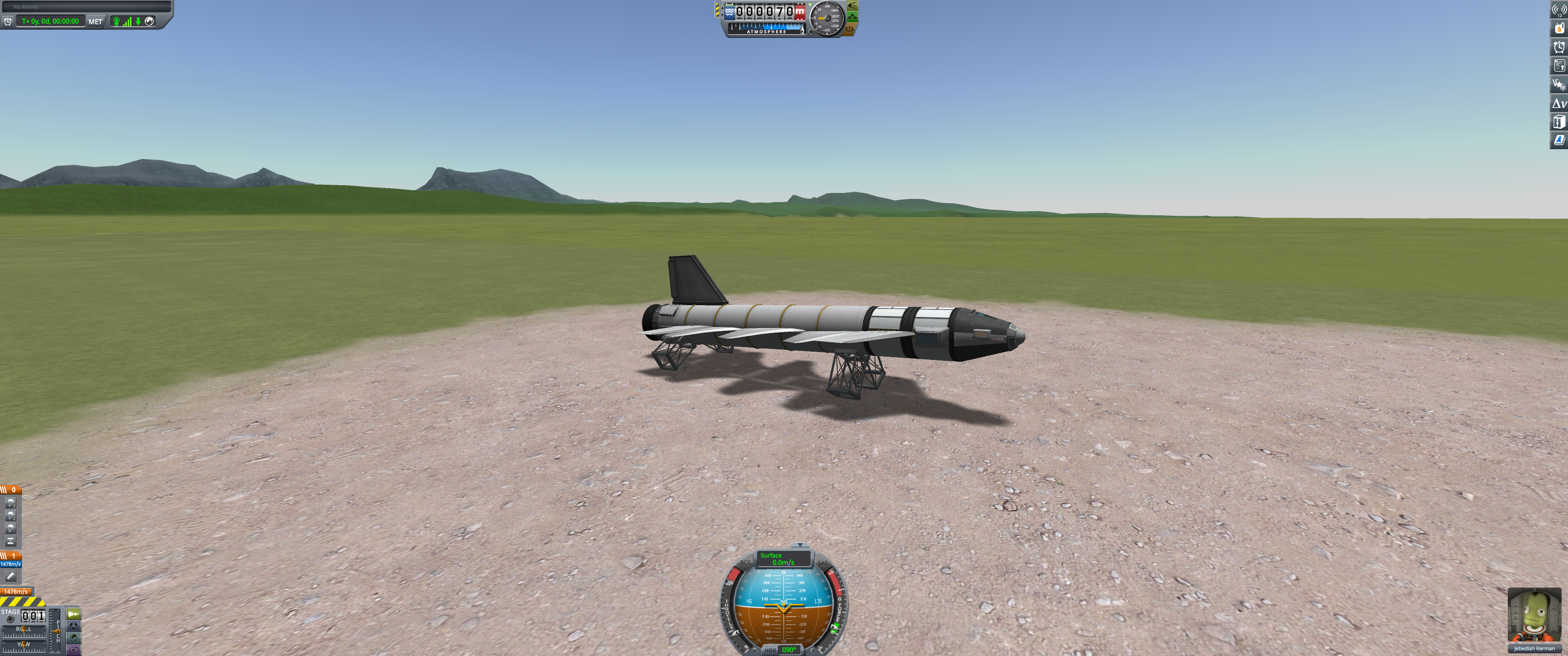 Our final image of this gallery, and we are back to where we started — a failed attempt at an SSTO that missed orbit by less than 10 meters per second. Maybe one of them tiny fuel tanks will do the trick. (Dec 21 2025)